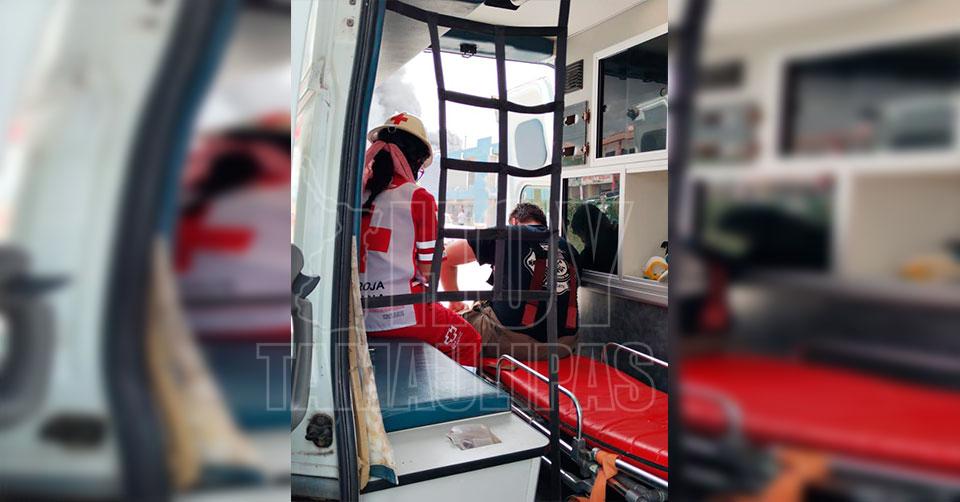 Paramédicos de la Cruz Roja se encargaron de atender a un elemento de Bomberos, quien presentó molestias al estar combatiendo el fuego, pero afortunadamente no pasó a mayores.