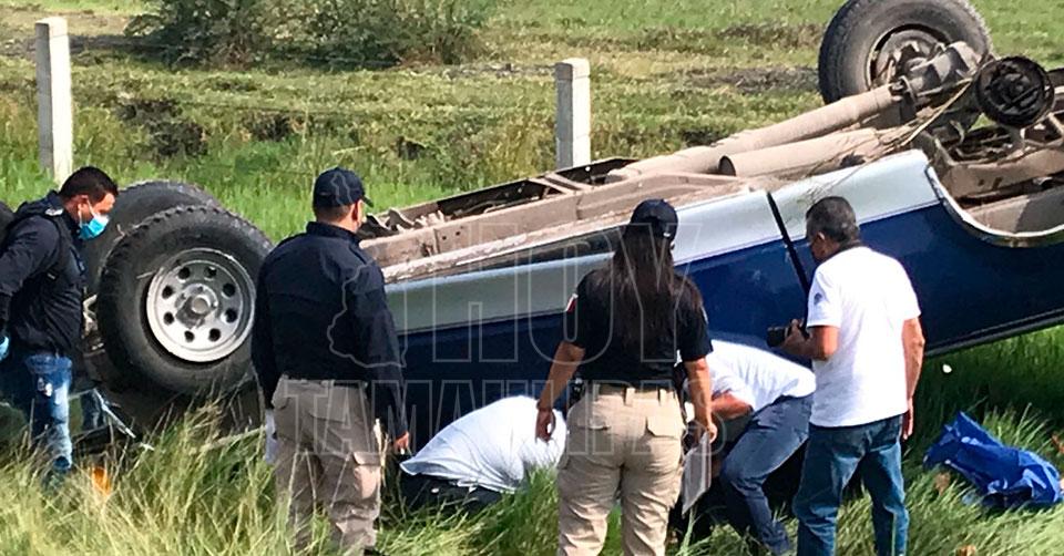 Jornalero muere aplastado por su camioneta tras volcadura en la carretera Mante-González