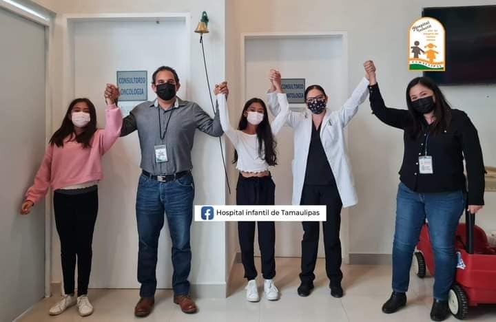 Fue esta mañana cuando Dulce, acompañada de sus familiares y el equipo médico que estuvo con ella durante todo el proceso, que por fin tocó la famosa campana que todos los pacientes esperan poder tocar, pues esto significa que se han liberado de la enfermedad.
