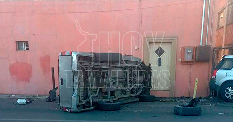 Nuevo Laredo, Tamaulipas. — Luego de chocar contra un vehículo estacionado, una persona que conducía una camioneta volcó en calles de la colonia Hidalgo en Nuevo Laredo, se salvó y huyó.