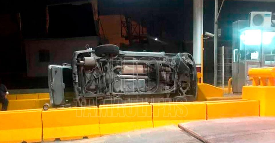 Reynosa, Tamaulipas. - Una camioneta Chevrolet color gris con placas de Texas terminó volcada en uno de los carriles de acceso al Puente Internacional Reynosa-Hidalgo.