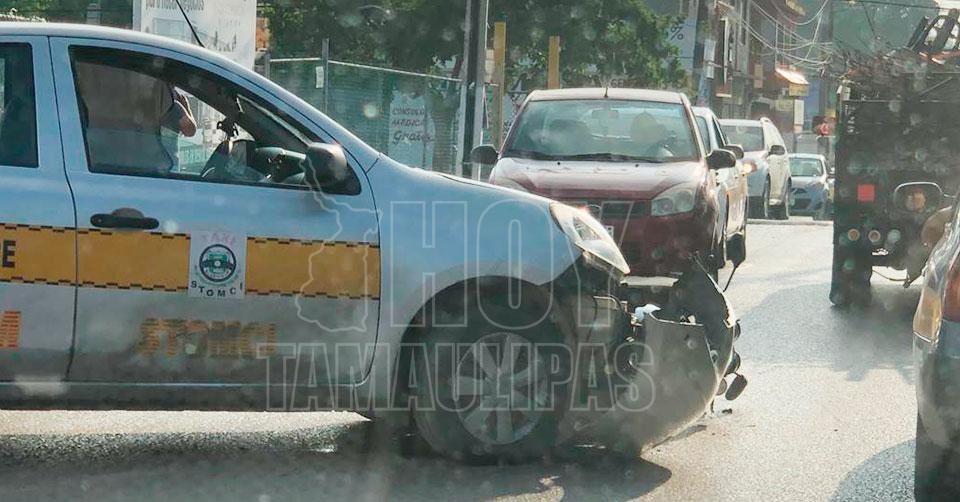Motociclista resultó lesionado en Altamira, al ser impactado por un taxi