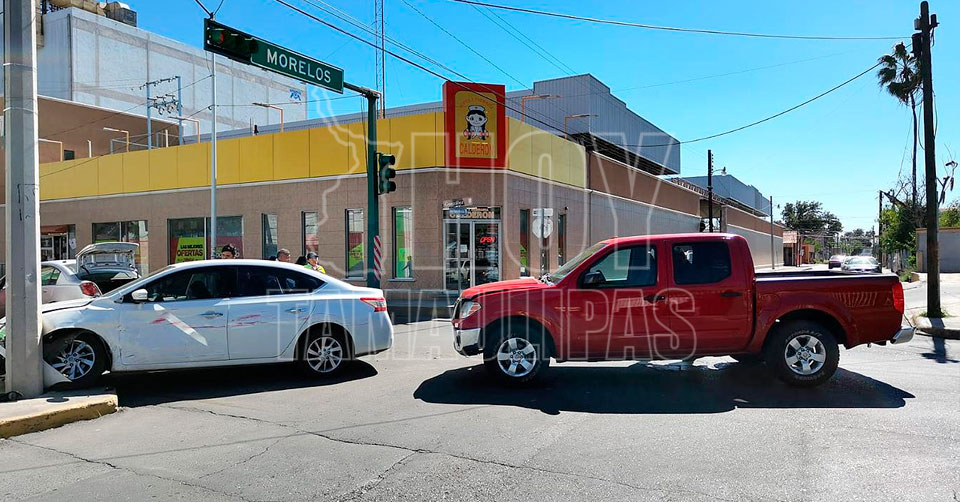 Nuevo Laredo, Tamaulipas. — Un accidente vehicular en pleno sector Centro de Nuevo Laredo, dejó saldo de cuantiosos daños materiales, informó Tránsito Municipal.