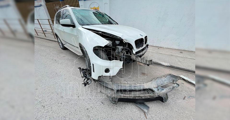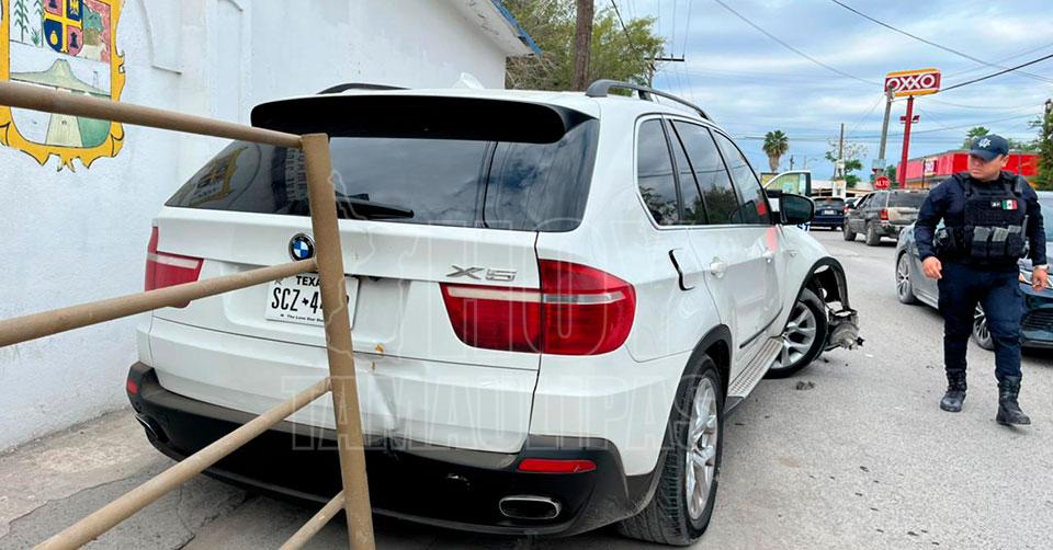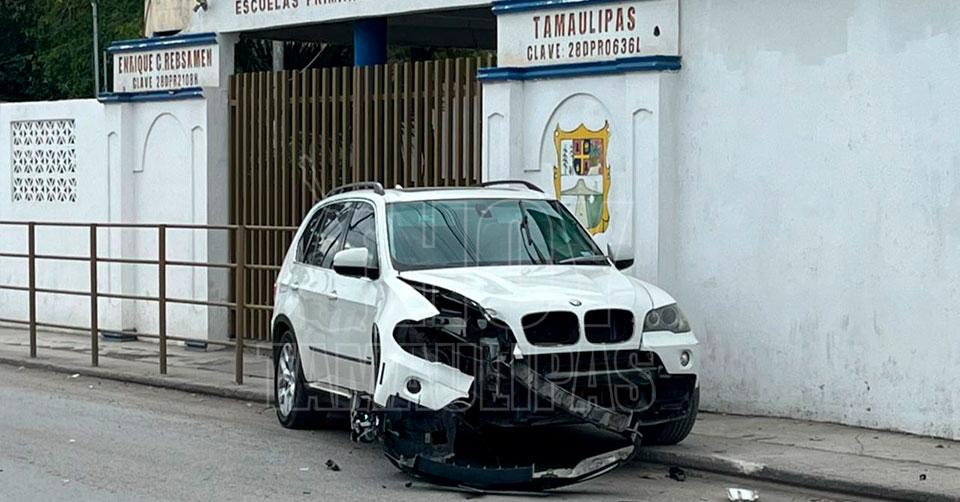 Matamoros, Tamaulipas. - Un fuerte accidente ocurrió en Matamoros, donde una mujer perdió el control del volante de su BMW en zona escolar, para luego chocar contra un poste y finalmente escapar a pie.
