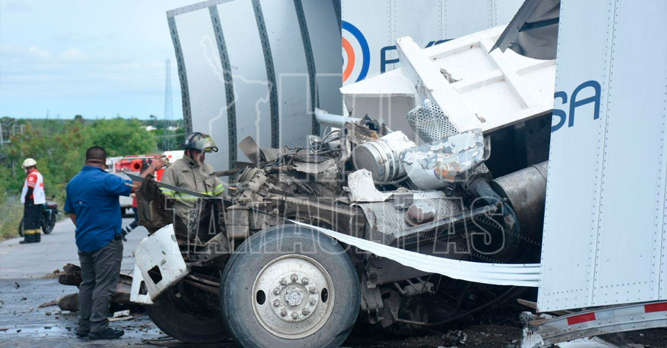 Ciudad Victoria, Tamaulipas. – El chofer de un camión de volteo quedó prensado en la cabina de la pesada unidad, luego de ser impactado por un tráiler doble articulado en el Libramiento Naciones Unidas, entrada al Fraccionamiento Todos por Tamaulipas en Ciudad Victoria.