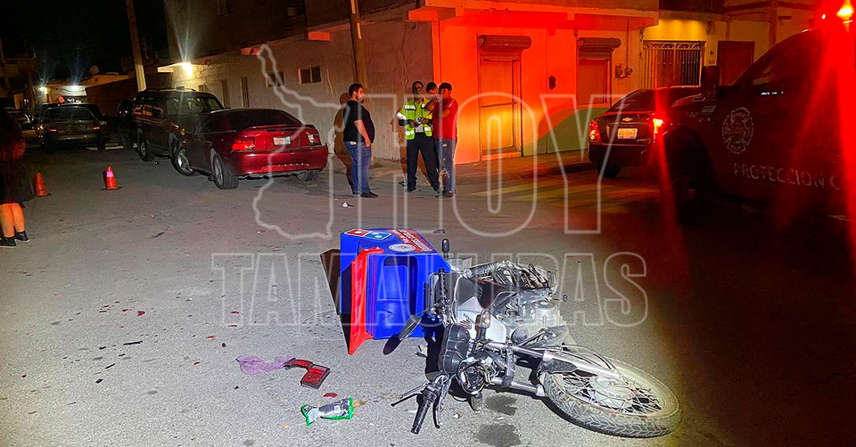 Nuevo Laredo, Tamaulipas.— Un motociclista de Domino's Pizza acabó herido luego de que se estrelló contra un automóvil, cuyo chofer, un menor de edad, se le cruzó en el camino sin precaución en un crucero de la colonia Los Fresnos en Nuevo Laredo.