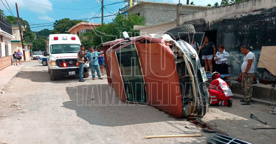 Abuelito arrolla a carpintero tras volcadura en Ciudad Victoria