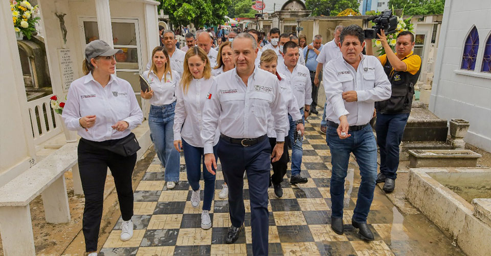 Para garantizar dichos trabajos, el Presidente Municipal y su esposa, la Sra. Ana Cristina Organista de Oseguera, recorrieron el panteón municipal de la colonia Árbol Grande, donde constataron la labor realizada en el recinto por las cuadrillas de Servicios Públicos.