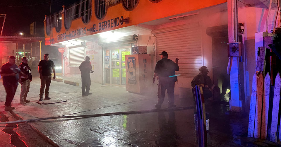 Los bomberos fueron alertados sobre un incendio de negocio y de inmediato se trasladaron al lugar; al llegar, encontraron en llamas la pequeña bodega de la carnicería.