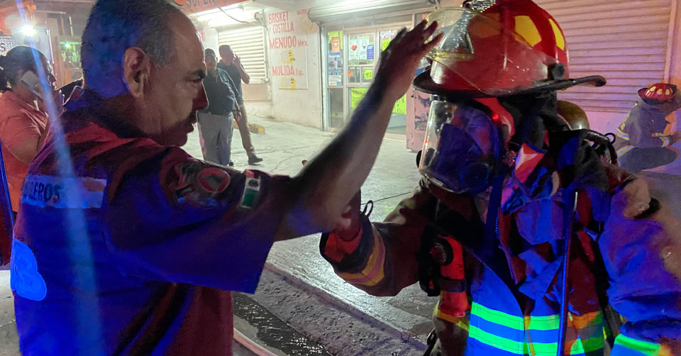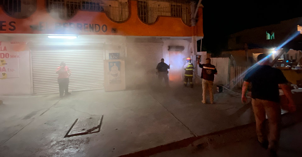 Nuevo Laredo, Tamaulipas.— Un pequeño cuarto utilizado como bodega en una carnicería y tienda de abarrotes se incendió presuntamente por error del personal que labora en el lugar, provocando una rápida movilización del personal de Protección Civil y Bomberos de Nuevo Laredo.