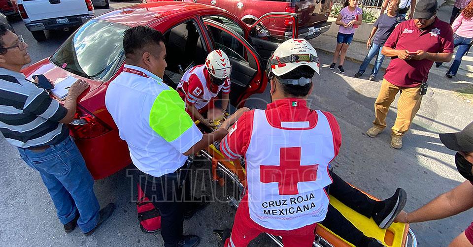 Paramédicos de la Cruz Roja, apoyados por un oficial de Tránsito, realizaron maniobras para sacar a la mujer de la unidad, estabilizarla y después trasladarla en ambulancia al hospital.