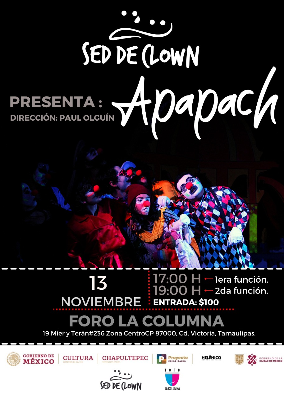 De igual modo, llega la obra de teatro “Apapach”, del grupo Sed de Clown, como parte de la gira regional del Circuito Nacional de Artes Escénicas Chapultepec: Teatro y Espacios Independientes 2022.