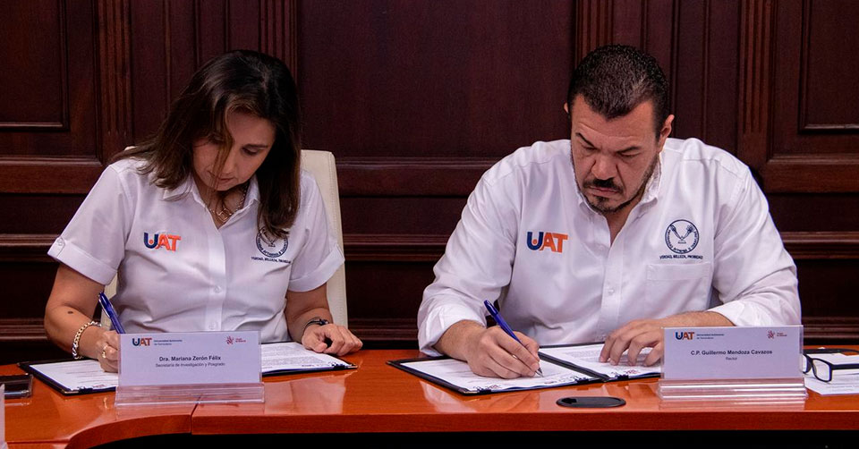 Ciudad Victoria, Tamaulipas. - La Universidad Autónoma de Tamaulipas (UAT) firmó un convenio de colaboración con la Editorial Tirant Lo Blanch México, con el propósito de fortalecer la difusión de las obras que desarrollan los académicos e investigadores de esta casa de estudios.