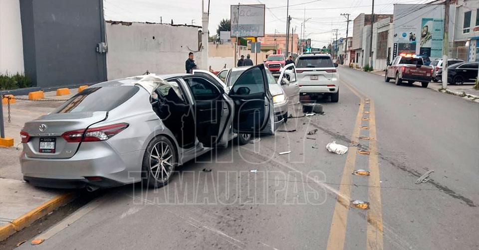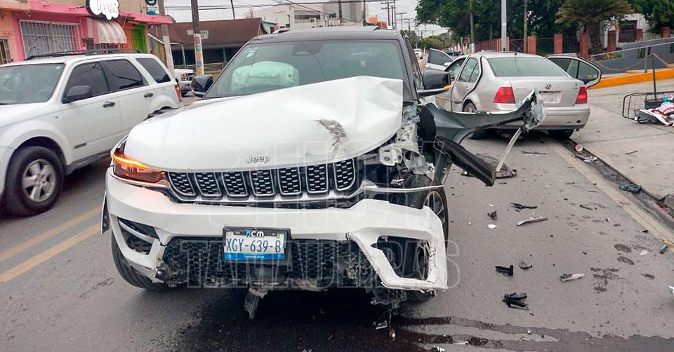 Matamoros, Tamaulipas. - Un automovilista que andaba amanecido junto con su novia y amigos, causó un fuerte accidente al no hacer alto en la calle Primera y Matamoros, resultando lesionado y destruye su unidad.