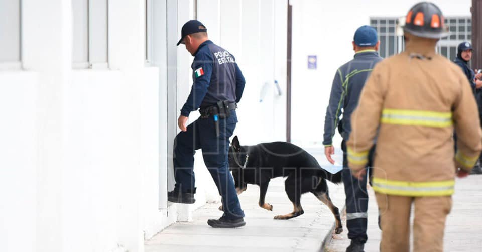 Hasta el lugar se trasladaron elementos de Protección Civil (PC) Estatal, de Bomberos, Policía Estatal con los binomios caninos y la Fiscalía General de Justicia de Tamaulipas, para desalojar a los poco más de 100 trabajadores que laboran en este edificio.