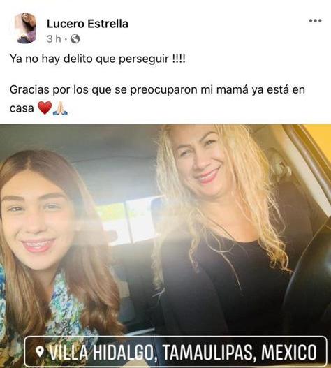 "Ya no hay delito que perseguir, gracias por los que se preocuparon mi mamá ya está en casa".
