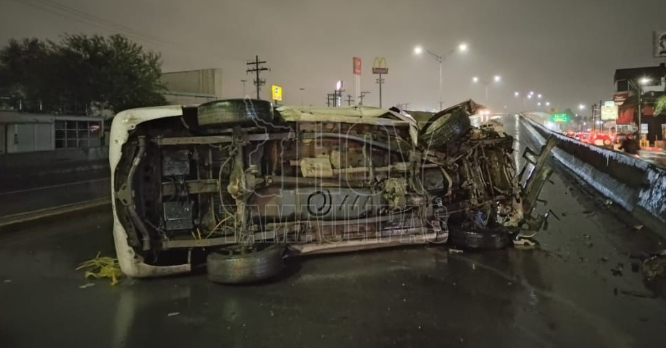 Matamoros, Tamaulipas. - Durante los primeros minutos de este domingo se registró una volcadura de una camioneta Ford, Explorer Sport, en el Puente Cuatro Caminos, ubicado en el Boulevard Manuel Cavazos Lerma, en dirección de oriente a poniente en Matamoros.