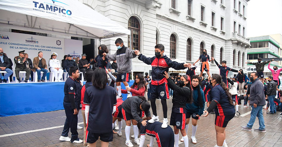 Tampico, Tamaulipas. - Con la participación de más de 15 mil personas y 25 contingentes, se llevó al cabo el tradicional desfile conmemorativo del 112 Aniversario de la Revolución Mexicana en Tampico.