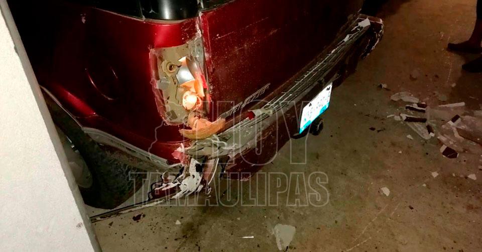 Altamira, Tamaulipas. - Dos personas lesionadas y cuantiosos daños materiales, dejó como saldo un aparatoso accidente vial provocado por un jovencito al volante de una camioneta y se estrelló contra un departamento del Fraccionamiento Valle Esmeralda en Altamira.