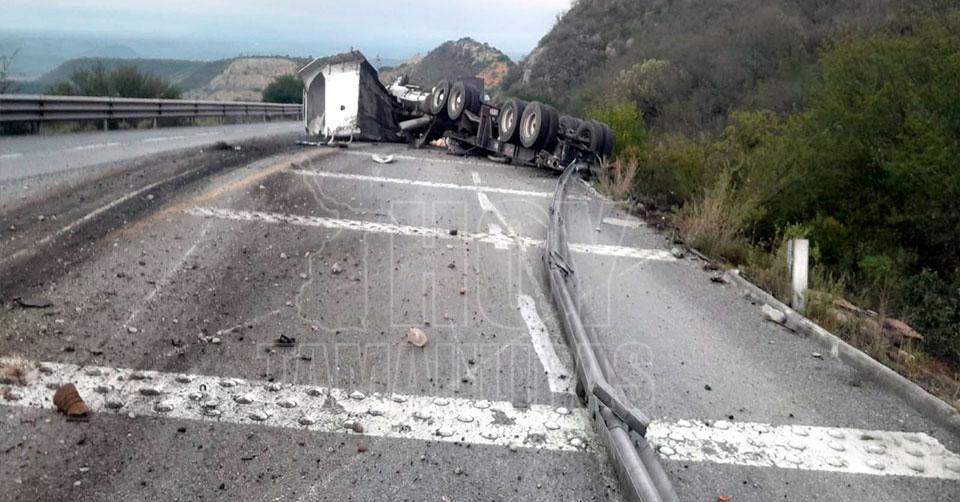 Dos lesionados dejó volcadura de trailer en la Rumbo Nuevo
