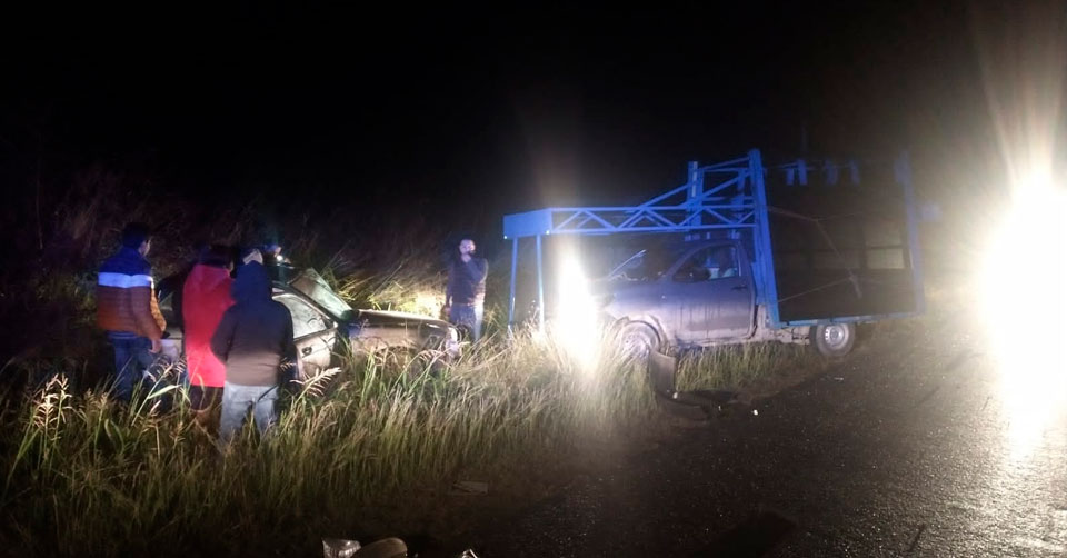 Hidalgo, Tamaulipas. - Un padre y su hijo resultaron lesionados anoche cuando al dirigirse a la ciudad de Tampico en un vehículo se impactaron de frente contra otra unidad, cuyo conductor presuntamente invadió el carril contrario en la Victoria-Monterrey.
