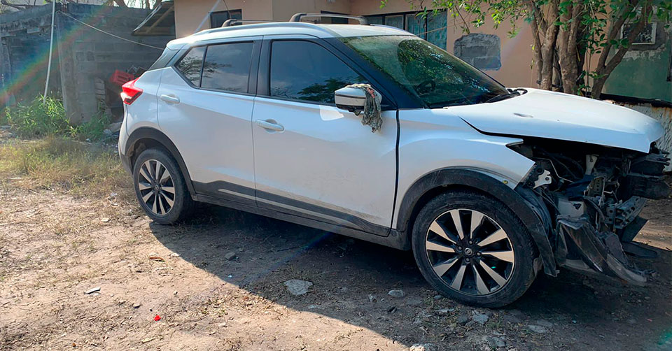 La unidad asegurada es una camioneta Nissan Kicks color blanco y una motocicleta, las cuales estaban en el patio trasero de un domicilio particular, el vehículo se encontraba con una puerta abierta y con manchas de sangre.
