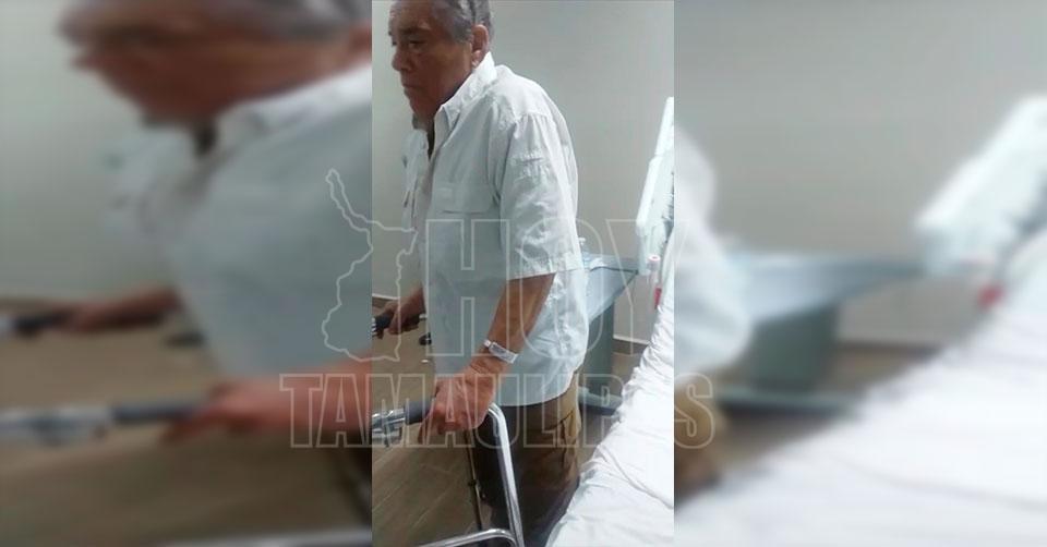 Mientras escucha que le iban a proporcionar una copia de la boleta y con lo cual ya quede en libertad, apoyado del andador se mueve en el pequeño cuarto donde estaba recluido.