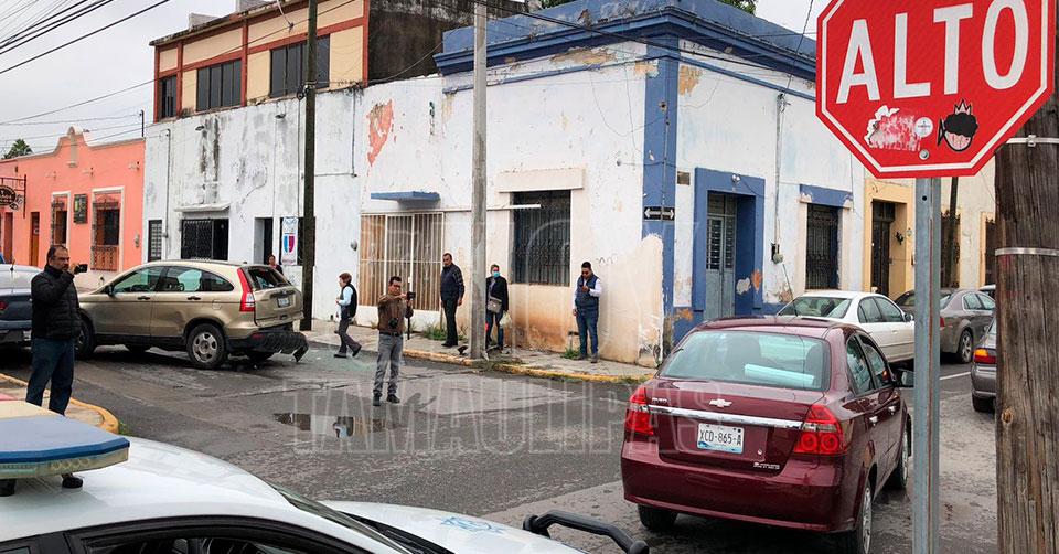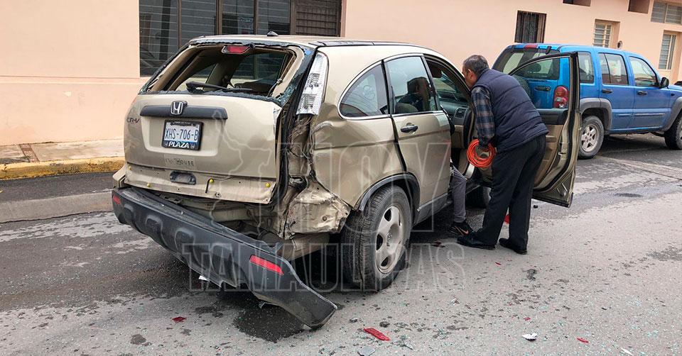 Ciudad Victoria, Tamaulipas. - La falta de precaución de una mujer al volante provocó un fuerte percance vial esta tarde, tras pasarse un alto obligatorio en el crucero del 19 Matamoros.
