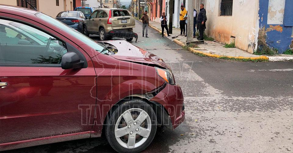 La conductora de un automóvil Chevrolet Aveo se desplazaba en dirección de oriente a poniente por la calle Matamoros, sin embargo, al llegar a la calle 19 se impactó contra una camioneta Honda CRV.