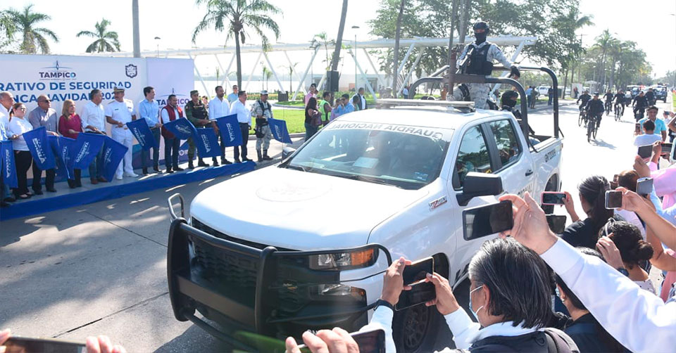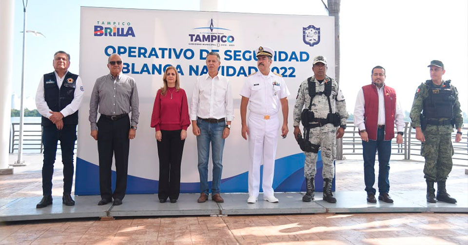 "Hoy ponemos en marcha el operativo "Blanca Navidad 2022" en el que desplazamos personal para reforzar la seguridad en zonas comerciales, bancarias, turísticas y en la colonias de nuestra ciudad. Como cada año hemos sumado fuerzas con el Ejército Mexicano, Secretaría de Marina, Guardia Nacional, la reciente creada Guardia Estatal, Protección Civil, Dirección de Tránsito y la Cruz Roja de Tampico, en un esfuerzo conjunto por seguir consolidando a nuestra ciudad, como una de las más seguras a nivel nacional", expresó.