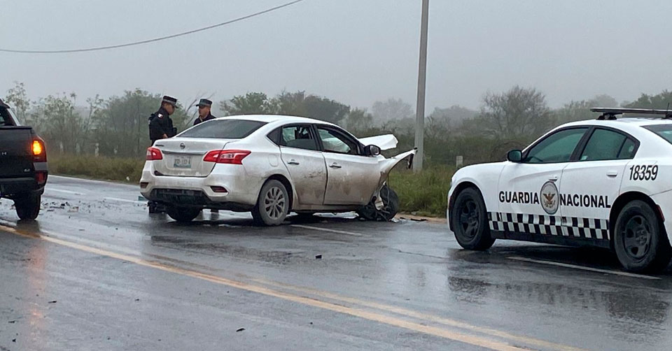 Reynosa, Tamaulipas. – Al menos dos personas resultaron lesionadas esta mañana tras registrarse un fuerte accidente vial en el Libramiento Anzaldúas, a metros del acceso al Puente Internacional Reynosa-Mission.