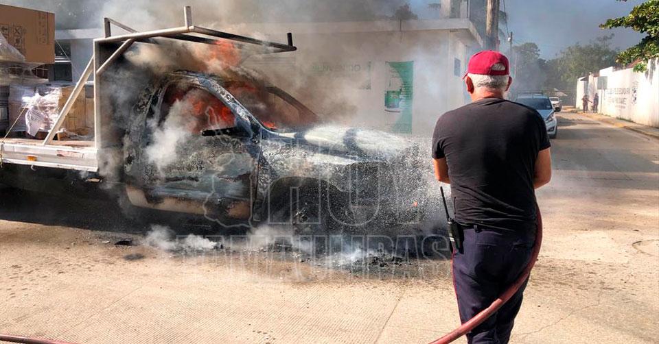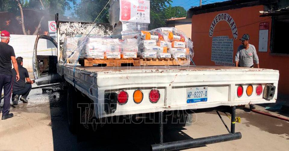Altamira, Tamaulipas. - Una camioneta de reparto de materiales para la construcción, se incendió de manera repentina mientras circulaba por calles de la colonia Laguna de la Puerta, en el municipio de Altamira, incidente que de inmediato movilizó a personal de Bomberos y demás cuerpos de emergencia.