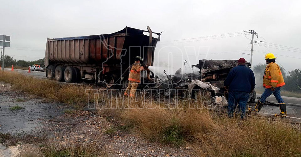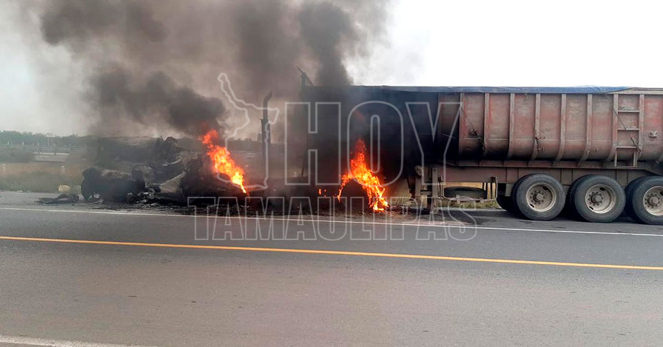 Nuevo Laredo, Tamaulipas.— El operador de un tráiler con tolva con destino a Nuevo Laredo se salvó de morir calcinado, luego de que el vehículo “estalló” en llamas mientras circulaba sobre la carretera Nuevo Laredo-Monterrey, en su vía libre.
