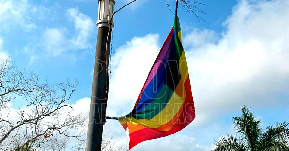 En el bordo del río Bravo, se han colocado dos banderas características del grupo para anunciar que se ha establecido un campamento en el que se dará asistencia a los que forman parte de este grupo vulnerable que los mismos migrantes han agredido de manera verbal.