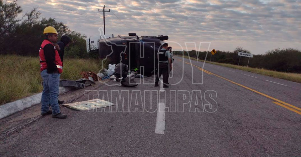 El chofer identificado como Hiram Isaí Sepúlveda Escalante, resultó con lesión en el metatarso izquierdo y recibió atención prehospitalaria por paramédicos de Protección Civil de Soto La Marina, sin necesidad de trasladarlo a un hospital.