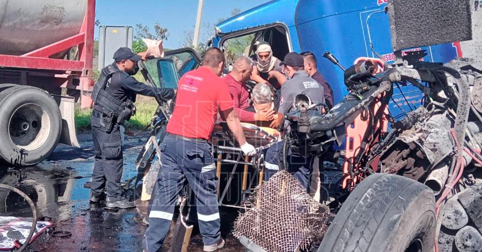 Como se informó, el accidente es a la altura de Ejido Miguel Hidalgo, donde colisionaron dos tráileres y un automóvil, dejando varios lesionados y cuantiosos daños materiales.