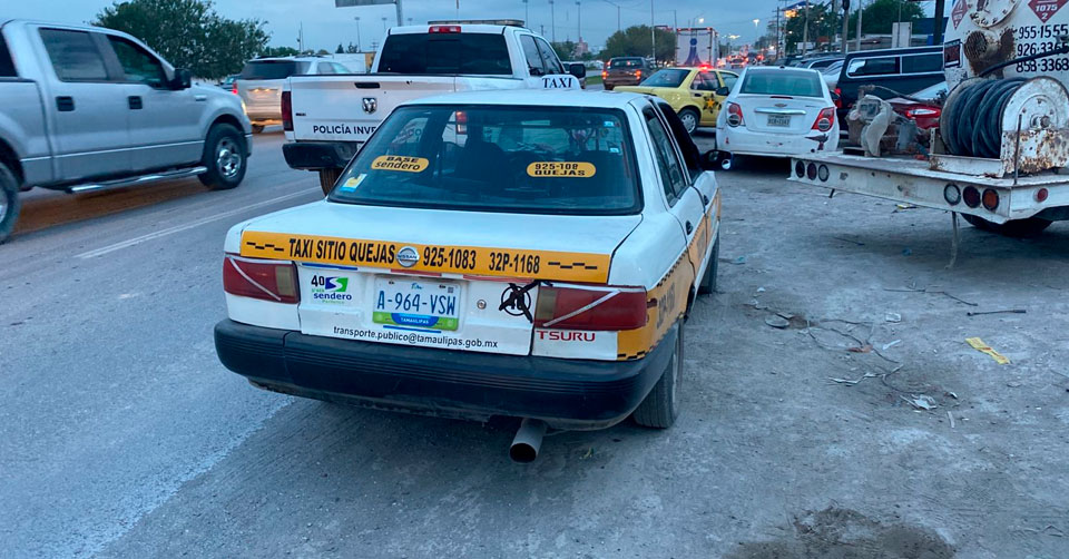 En el taxi Nissan Tsuru, de la base Sendero Periférico, las autoridades ministeriales localizaron botes de cerveza y otras evidencias.