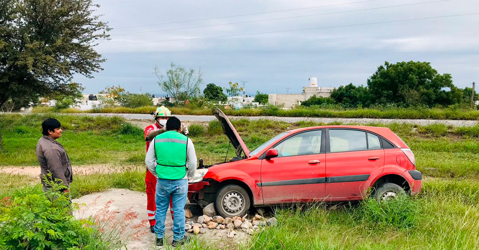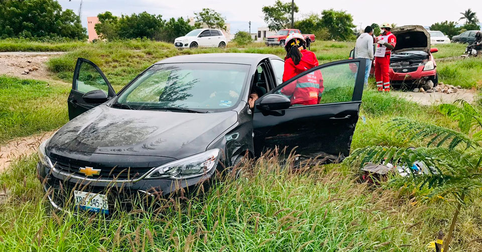 Esto provocó que impactara a un vehículo Kia y ambos terminaron en medio del camellón entre la maleza.