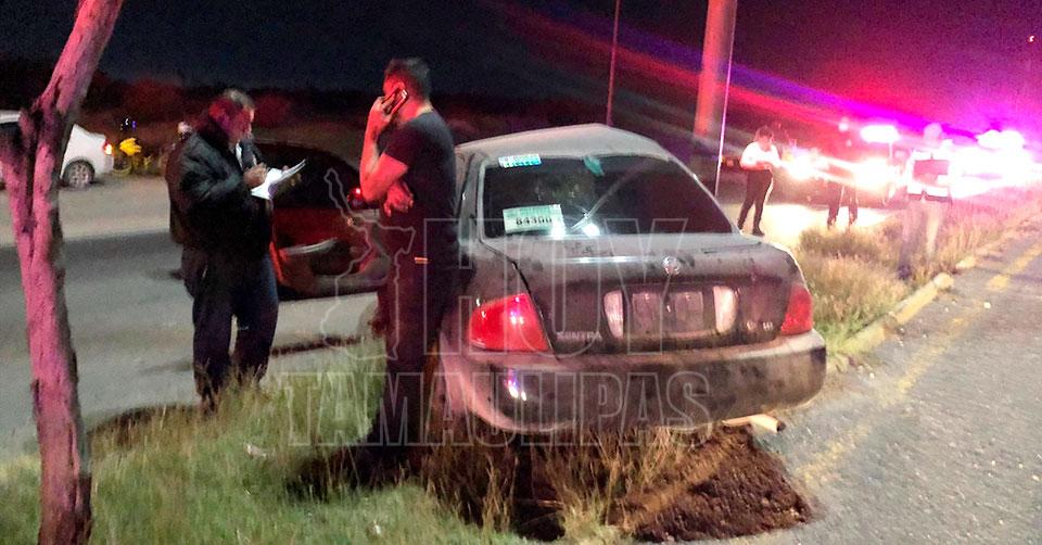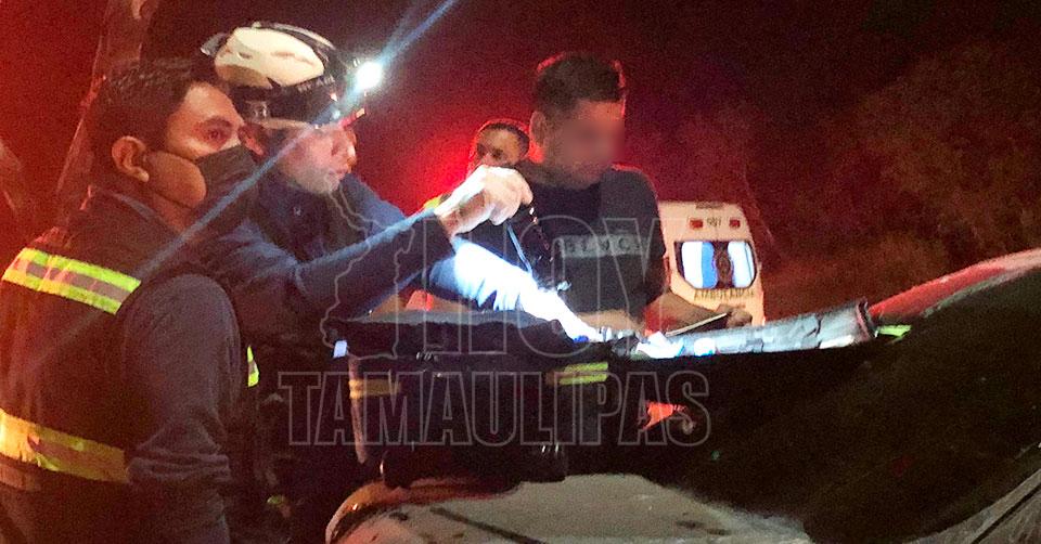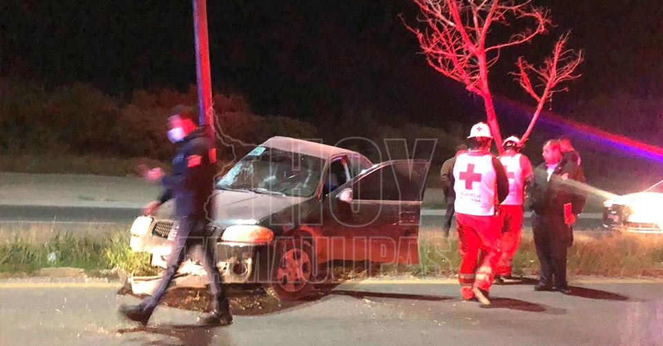 Ciudad Victoria, Tamaulipas. - Dos hombres en presunto estado de ebriedad resultaron lesionados al impactarse el vehículo en el que viajaban contra una luminaria, en el libramiento Naciones Unidas, entre el relleno sanitario y el Fraccionamiento Marte R. Gómez.