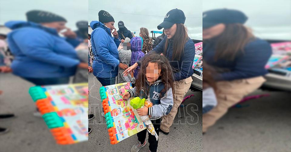 Elementos de la FGJT llevan juguetes y dulces a niños de bajos recursos en Matamoros