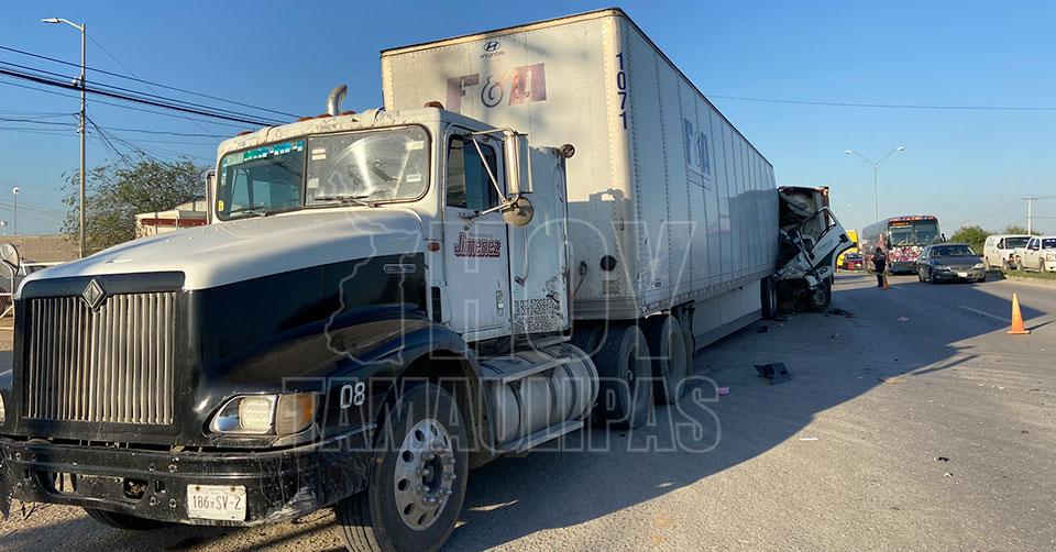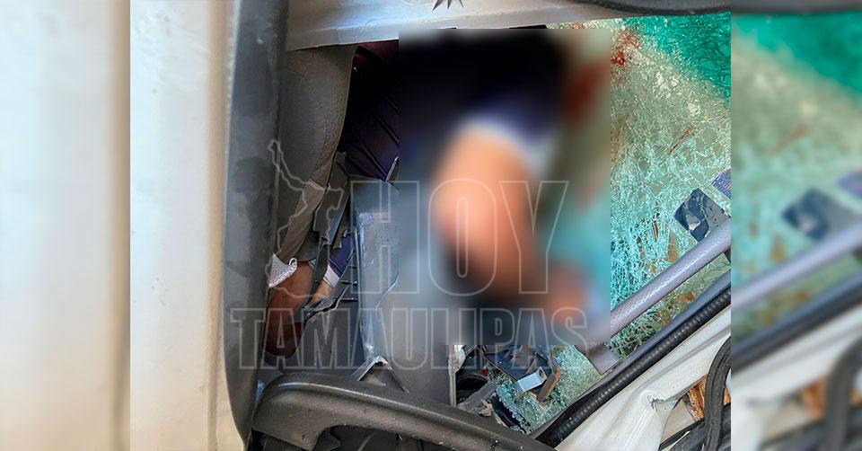Nuevo Laredo, Tamaulipas. - Un menor de edad murió prensado dentro un vehículo comercial luego de que su conductor chocó por alcance contra la caja de un tráiler, cuyo chofer iba a ingresar a una línea de transportistas ubicada sobre la Carretera Nacional, al sur de Nuevo Laredo.