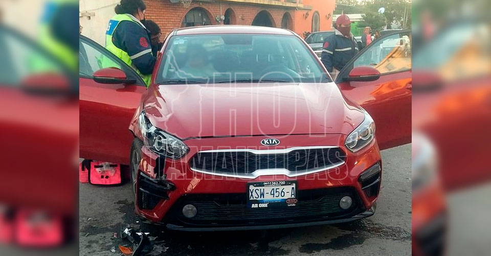 Se pasa alto y choca automóvil reciente en Nuevo Laredo