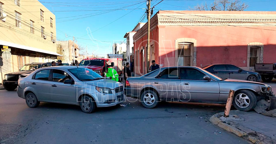 La afectada dijo a las autoridades de Tránsito que iba circulando de norte a sur por la avenida Juárez y teniendo vía de preferencia, cuando sufrió el impacto en un costado.