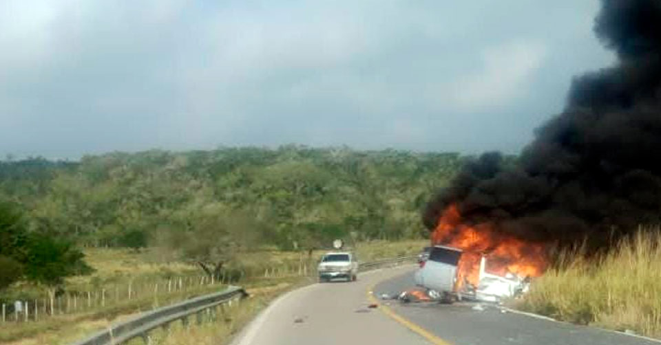 Dos calcinados y tres lesionados deja accidente en Aldama-La Marina