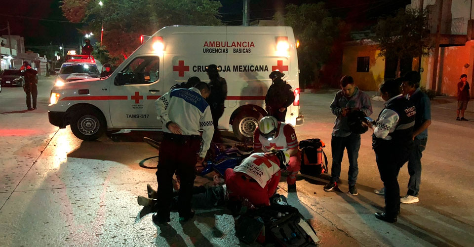 Ciudad Victoria, Tamaulipas. – Un adulto mayor que iba en su bicicleta resultó lesionado durante la noche de ayer, tras ser arrollado por una moto cuando presuntamente se atravesó a su paso.