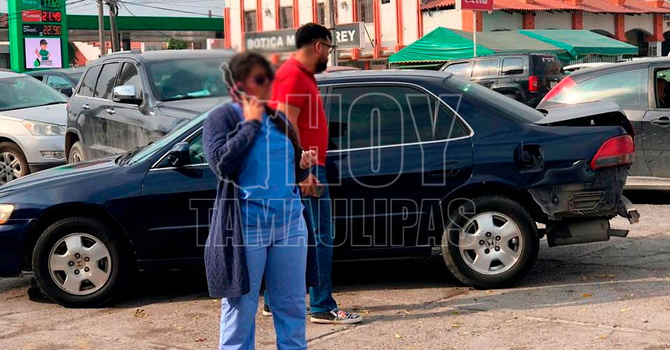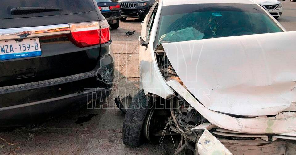 Matamoros, Tamaulipas. - Una presunta enfermera inició mal la semana y es que con el auto que conducía chocó a varios vehículos esta mañana en Matamoros.