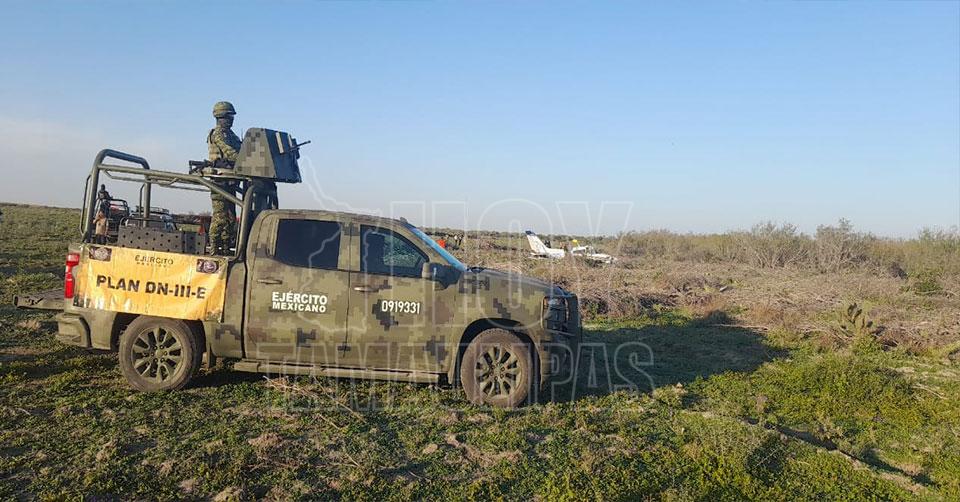 Al lugar arribaron elementos de la Secretaría de la Defensa Nacional (Sedena), Guardia Nacional, Guardia Estatal y Protección Civil para recabar información y reporte del incidente.
