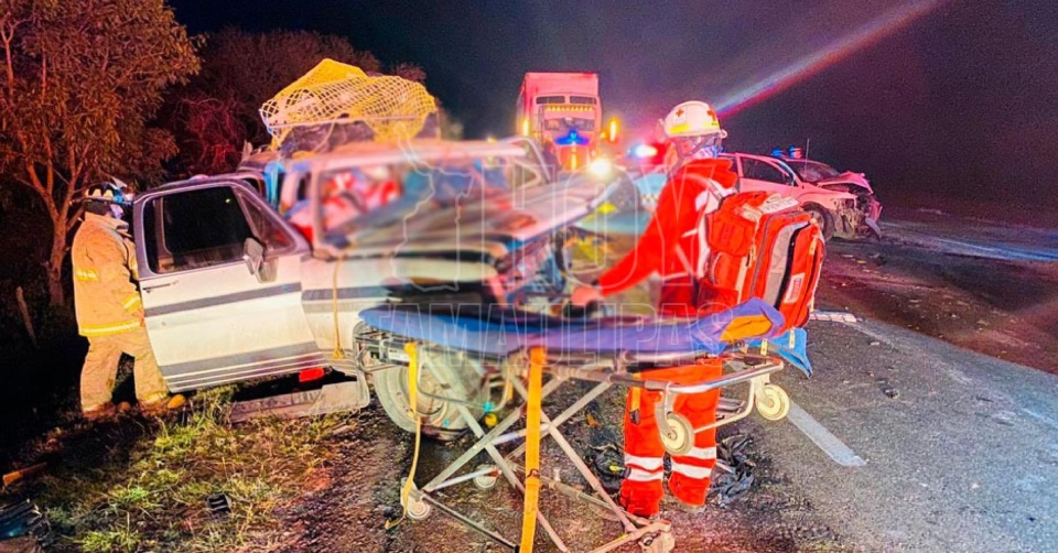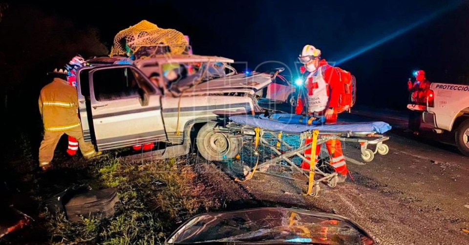 Ciudad Victoria, Tamaulipas. - Una persona sin vida y 11 más lesionados, entre ellos varios prensados, es el saldo preliminar de un fuerte accidente carretero registrado esta madrugada en el kilómetro 29 de la carretera Zaragoza-Victoria.