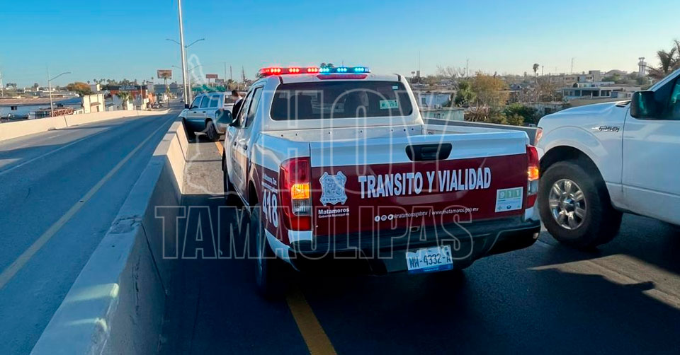 Matamoros, Tamaulipas. - Un nuevo accidente vial ocurrió la mañana de este jueves en el puente de la Roberto Guerra en Matamoros, donde únicamente hubo daños materiales.