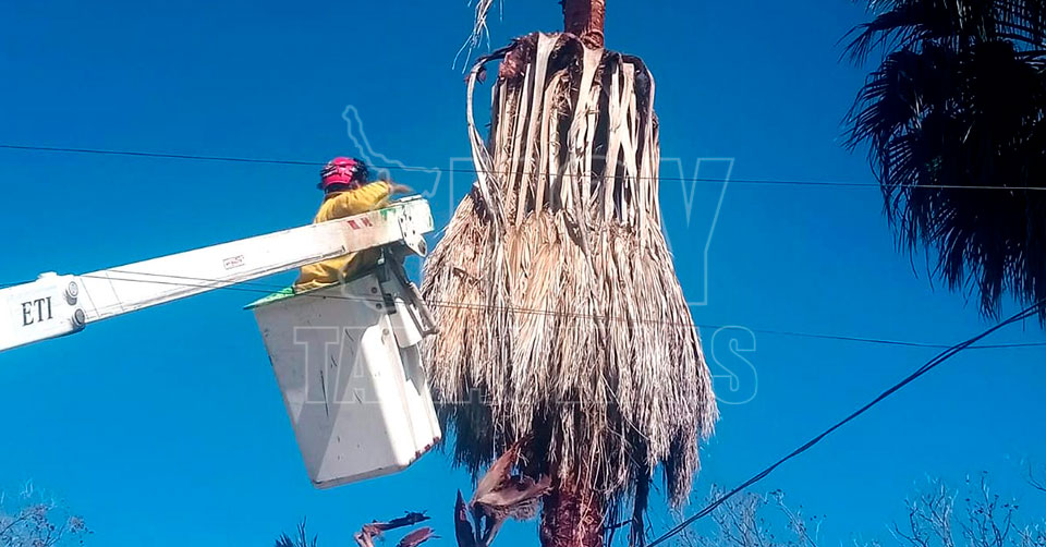 Nuevo Laredo, Tamaulipas.— Un hombre que se encontraba podando una palmera, fue rescatado de lo alto de la misma por personal de Protección Civil y Bomberos de Nuevo Laredo, luego de que quedó “atrapado” presuntamente al sufrir un ataque de nervios que le provocó falta de oxigenación.